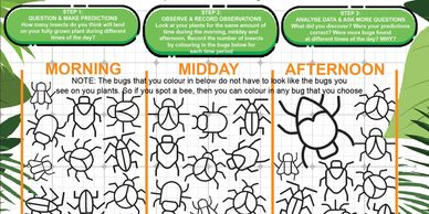 Follow the instructions. NOTE: You can download this page if you do not have it. You can conduct this scientific investigation over one day or over several days. Make sure you look at your flowers for the same amount of time during the morning, midday & afternoon. (you can determine how long you want to watch)